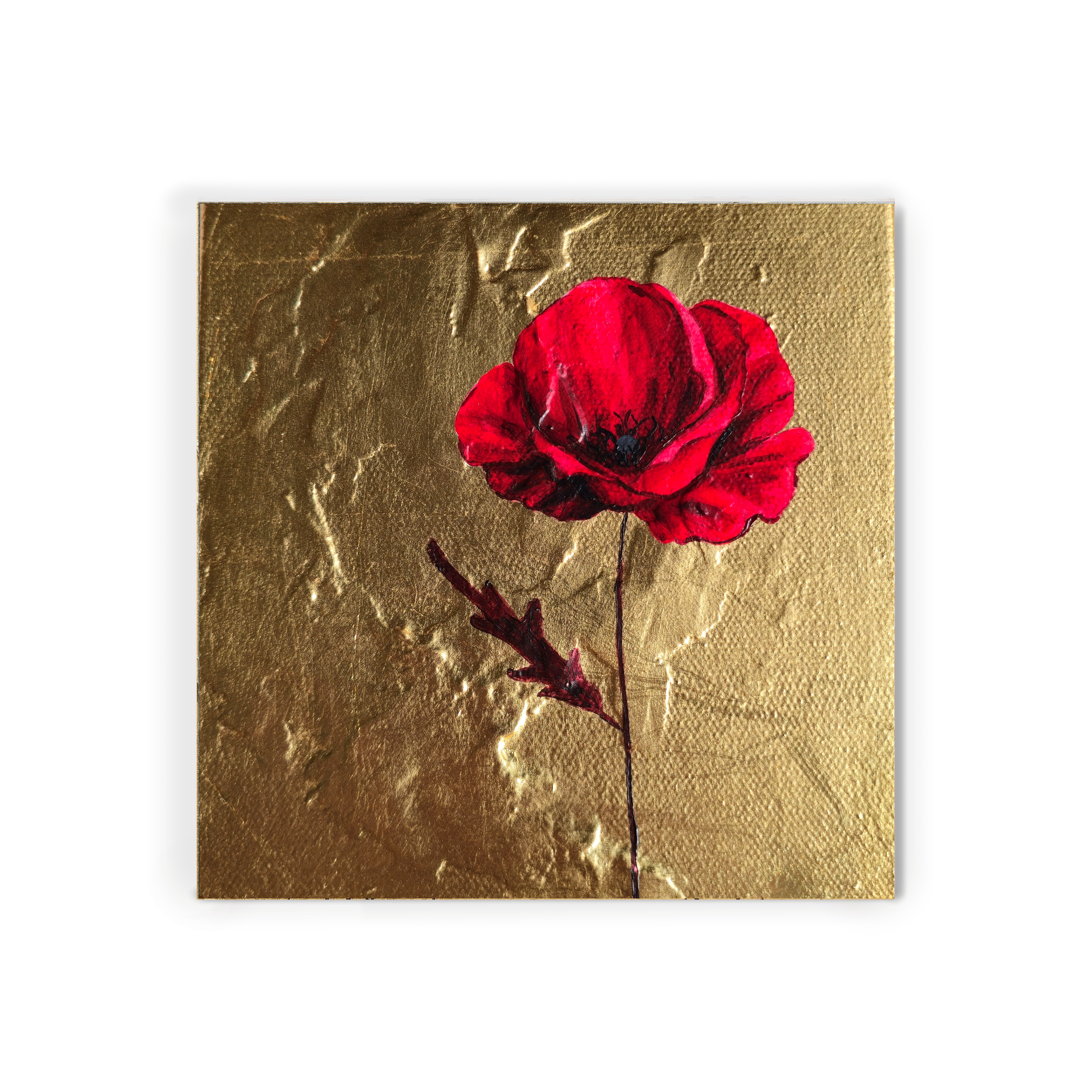 20 x 20Sold Out$850Acrylic, Mixed Media, Gold FoilWhen you hold a poppy, she is heavy. She holds more in her butterfly petals than their light and fluttering breathing. She is memory and meaning. Her hue of crimson is a dart, her spine is straight and her eyes hold yours in a direct knowing stare. You do not love a poppy just for her beauty. You love her knowing she is something more.
