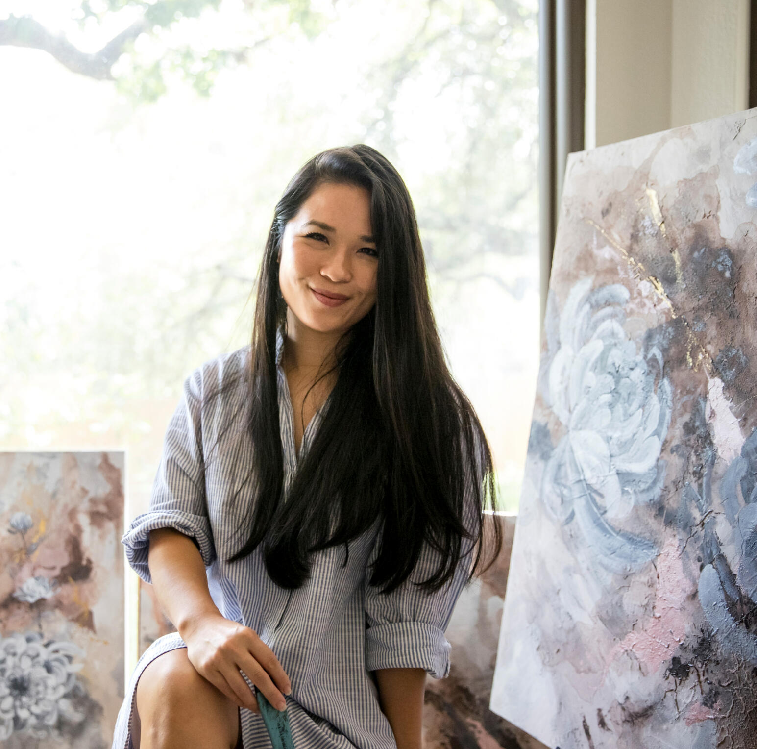 “beauty should be experienced at every possible moment...”Lauren Hua is an contemporary abstract painter who uses art as a way to blend her American upbringing with her Asian heritage. Carrying her heritage to the canvas as the subject, her pieces are free flowing, with both Japanese and Chinese influences in the brush strokes, motifs and compositions, yet breaks from tradition with bold textures and splashes of metallics which speaks to the more Western, independent, contemporary style.Her work expresses her pursuit of art and beauty, despite being taught these things were of little value, while still honoring her upbringing. These concepts have shaped her approach to art and been growing and evolving since she first started painting in 2020 when she left her established career and began to discover who she was as a person as well as an artist.Artist StatementHer works are stories about breaking from the exacting regime of your past, a celebration of personal evolution, emphasizing the freedom to exist without the pressure of perfection or rigid expectations. In her pieces, the past is acknowledged and honored—offering the foundational framework for identity—but it is never the defining force. Rather than allowing it to dictate the artist’s present or future, she invites viewers to embrace a more open, expansive sense of self, where growth and transformation can unfold without fear of judgment or restriction.Above all, she is an an avid believer that beauty should be experienced at every possible moment, whether that is found in the perfect latte, a breathtaking view, or a stolen kiss. She strives to create art that communicates that belief, one that does not shock and awe, but gives the viewer a muted joy, peace and contentment that can be experienced everyday.